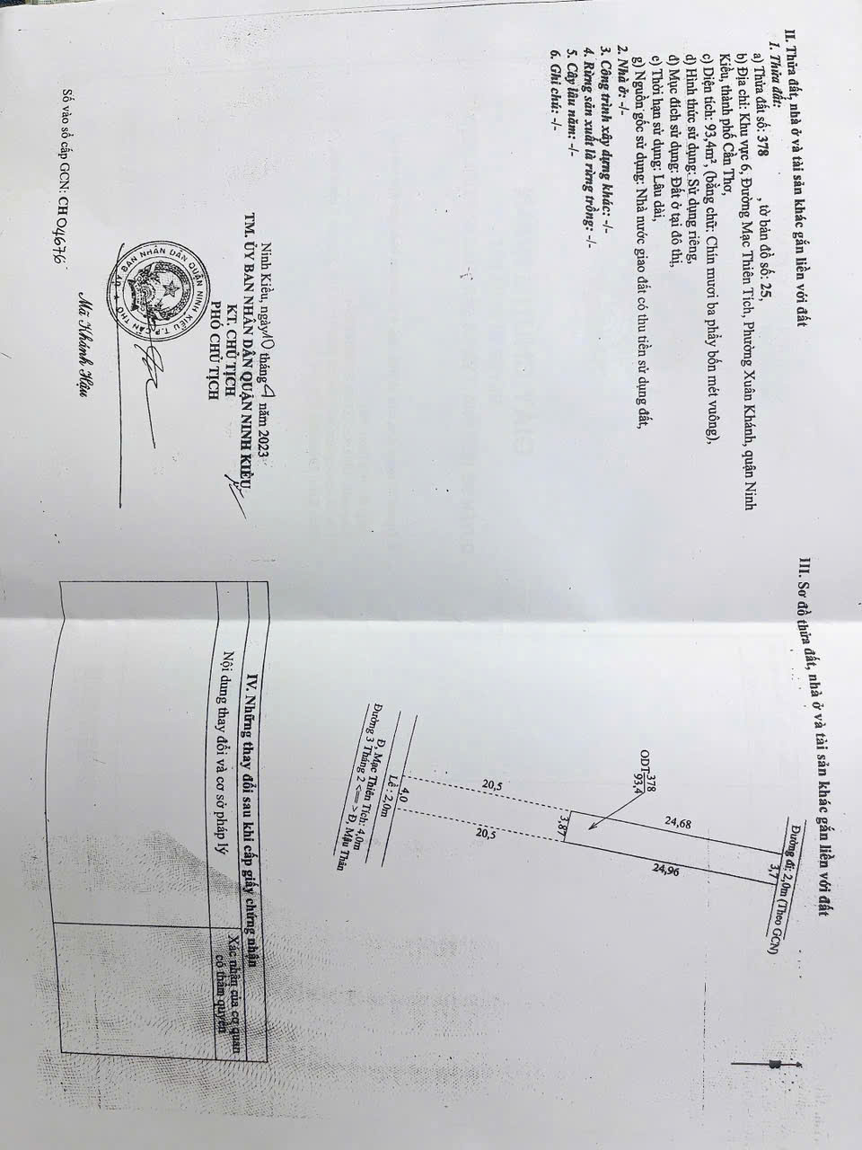 BÁN ĐẤT TẶNG NHÀ TRỆT MẶT TIỀN MẠC THIÊN TÍCH, P.NINH KIỀU (XUÂN KHÁNH CŨ), CẦN THƠ